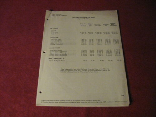 1962 Ford Price sheets Sales Brochure Booklet Catalog Original Old Book