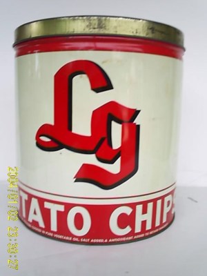VINTAGE 1970'S LG POTATO CHIP 1 LB ADVERTISEMENT TIN