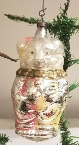 Title (ebay affiliate link): Teddy Bear, dressed as a Comical Clown. 1920s Glass German Ornament.