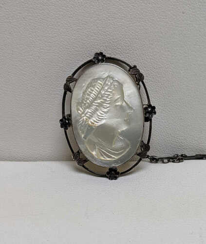 Title (ebay affiliate link): ANTIQUE ARTS & CRAFTS AUSTRALIAN MOTHER OF PEARL CAMEO BROOCH STYLE RHODA WAGER