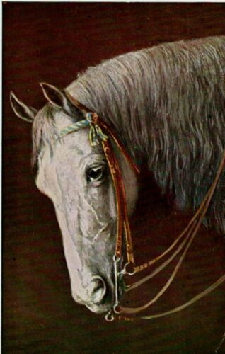 VINTAGE ART postcard: GREY HORSE WEARING A BRIDLE