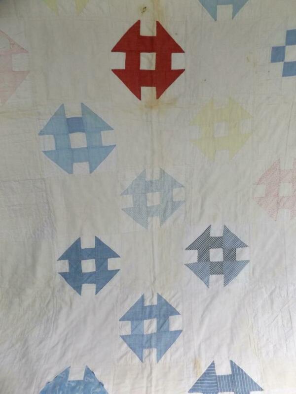 Title (ebay affiliate link): Old Primitive Vintage Hand Stitched Quilt Red White & Blue Anchors Gingham +