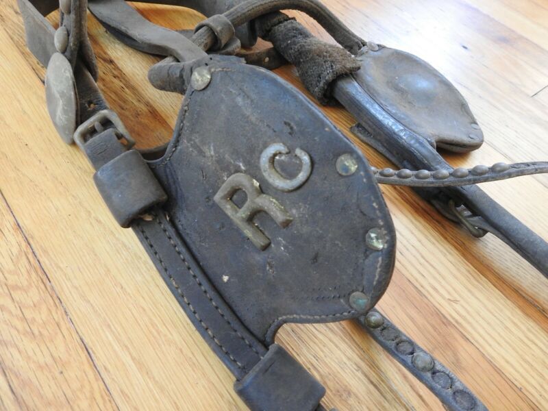 Primitive Plowing Leather Bridle w/Blinders Brass Rivets and Initials Maine Farm