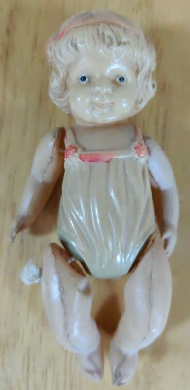 Antique 4" Celluloid Plastic Molded Doll With Clothing