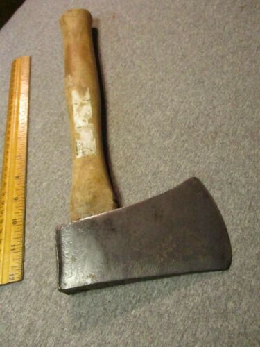 Title (ebay affiliate link): VINTAGE HATCHET/3 1/8" CUT/NO LEGIBLE NAME/HAS GOOD WOODEN HANDLE/GOOD CAMP TOOL