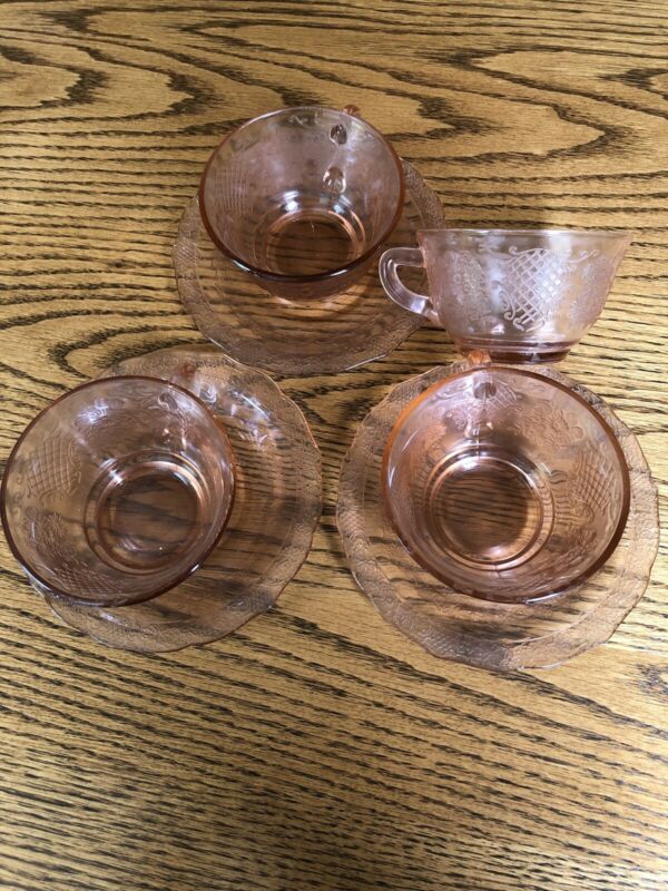 Title (ebay affiliate link): Vintage Federal Glass Co. Normandie Bouquet & Lattice Pink Cup & Saucer Sets