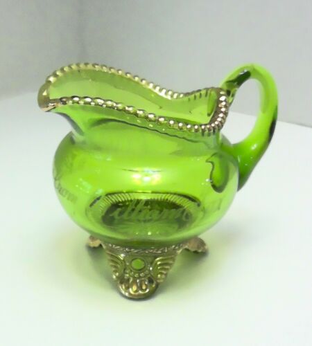 Title (ebay affiliate link): 1903 ETCHED GREEN DEPRESSION GLASS WITH GOLD OVERLAY TRIM DECORATIVE PITCHER