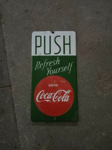 Porcelain Push Coca Cola Enamel Sign Size 4" x 8" Inches