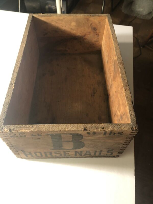 Title (ebay affiliate link): 1890-1900 New Brighton Pa. Horse Nails 25# Dovetailed Box Sent Armer Schenectady