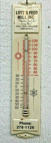 1960''s LOTT''S FEED MILL INC Thermometer Old Feed & Seed Advertising Store Sign