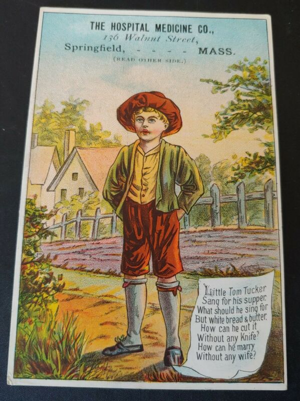 Title (ebay affiliate link): Trade Card THE HOSPITAL MEDICINE CO, SPRINGFIELD MA - LITTLE TOM TUCKER SANG 4