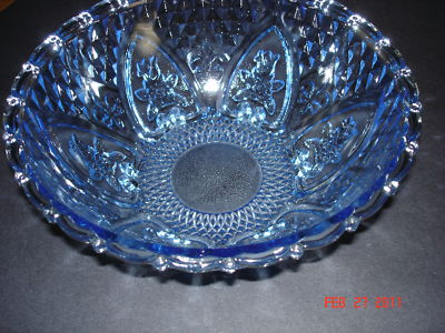 Title (ebay affiliate link): Pretty Vintage Blue Glass Bowl w/Fleur De Lis and Roses