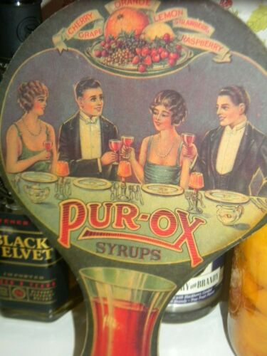 vintage hand fan w/two young couples. mixed recipes w/Pur-Ox Syrup. Allentown Pa