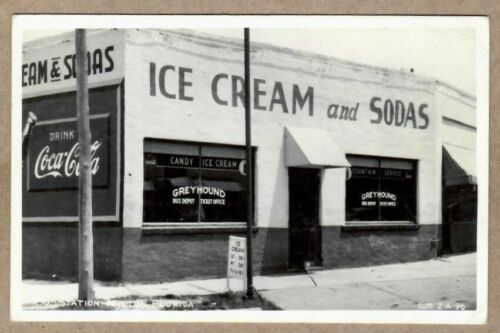 Title (ebay affiliate link): RPPC Greyhound Bus Station IceCream Coca Cola Milton Florida Real Photo Postcard