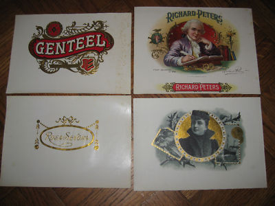 (4) Old Cigar Labels- Genteel, Senora, Peters + 1