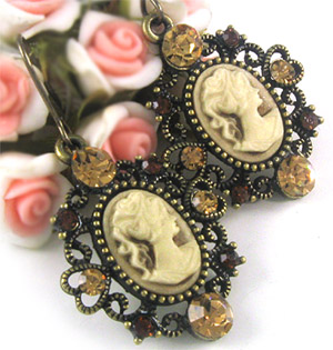 Title (ebay affiliate link): ANTIQUE VINTAGE STYLE CAMEO DANGLE EARRINGS JEWELRY E39