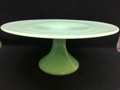Jadeite green Glass hobnail cake serving stand plate platter pedestal jade milk