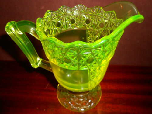 Vaseline glass daisy and button queens creamer cream pitcher uranium coffee milk