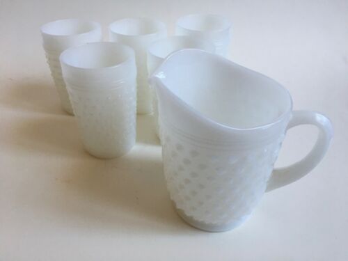 Title (ebay affiliate link): VINTAGE WHITE MILK GLASS HOBNAIL PITCHER & DRINK GLASSES TUMBLERS LOT OF 6