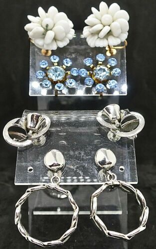 Title (ebay affiliate link): Vintage Screw Back Earrings Lot 4 Pair: White Milk Glass Blue Rhinestones Dangle