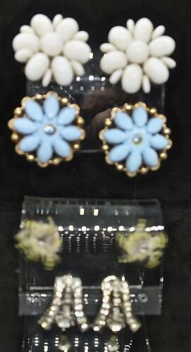 Title (ebay affiliate link): Vintage Screw Back Earrings Lot 4 Pair Feather Rhinestone Milk Glass Blue Flower