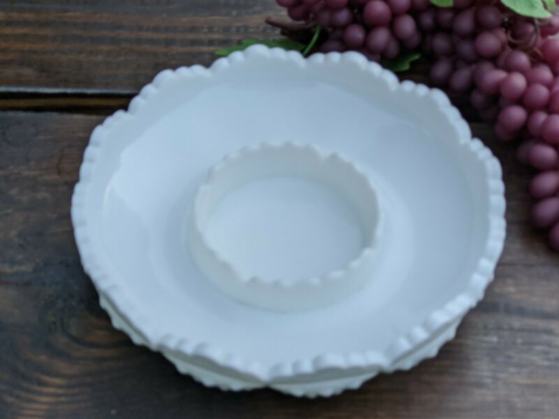VINTAGE Fenton White Milk Glass Hobnail Pattern Chip & Dip Snack Bowl Dish