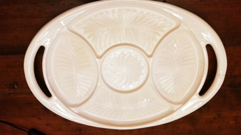 Title (ebay affiliate link): VINTAGE JEANETTE SHELL PINK MILKGLASS 5 PART DIVIDED RELISH DISH TRAY