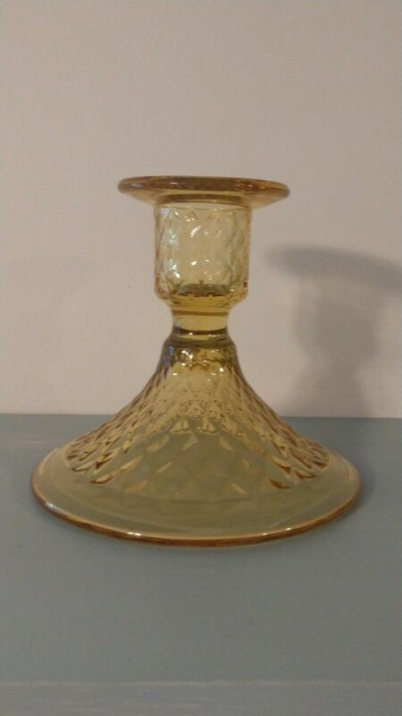 Title (ebay affiliate link): Vintage Candle Stick taper holder Yellow Depression Glass diamond pattern 3.75"
