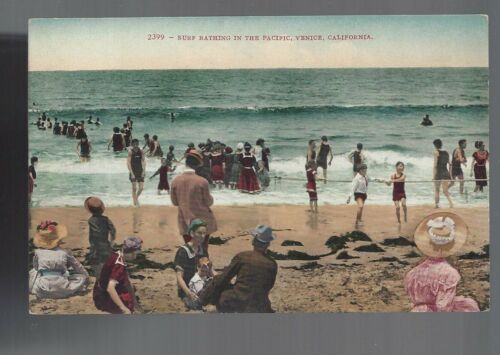 Title (ebay affiliate link): Venice California postcard c. 1920 Surf Bathing in the Pacific beach scene