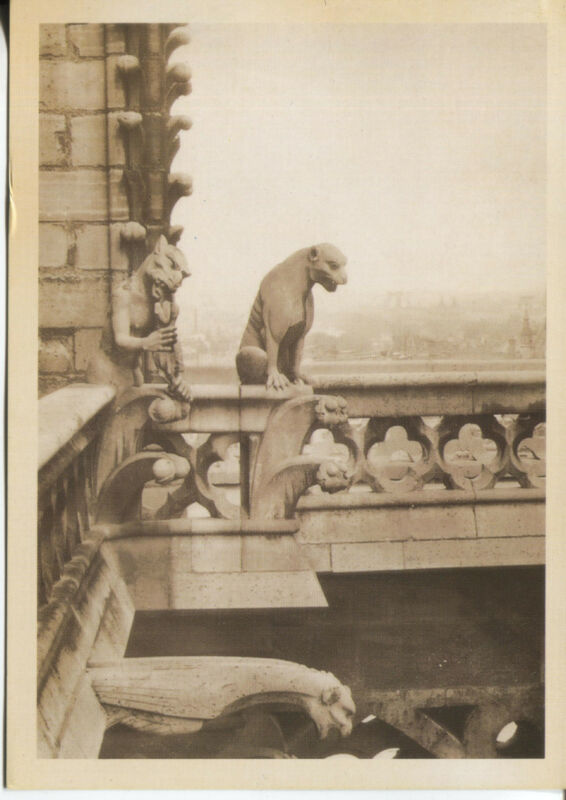 POST CARD OF GARGOYLES ON A BUILDING GUARDED AGAINST EVIL SPIRITS & REMOVED RAIN