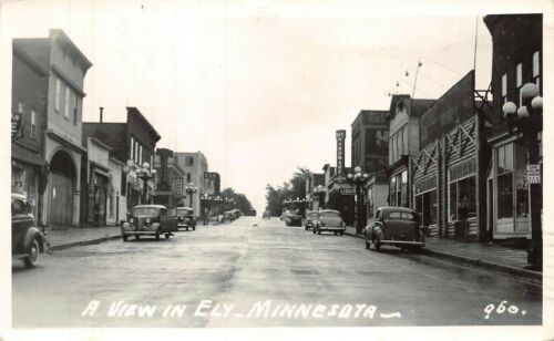 Title (ebay affiliate link): Ely, MN-Real Photo Postcard Along a Main Street-Stores and Vintage Cars