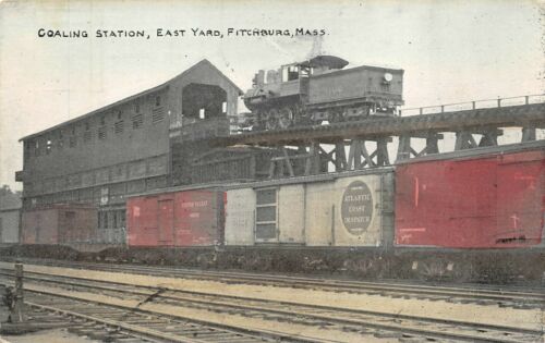 Title (ebay affiliate link): Fitchburg, MA-East Railroad Yard Coaling Station & Train on Top & Cars on Tracks