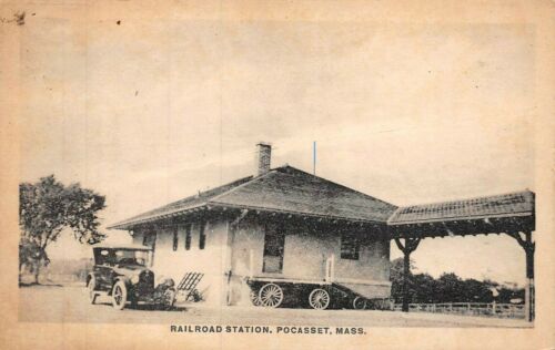 Title (ebay affiliate link): Pocasset, MA-Cape Cod-Railroad Station and Vintage Car-Postcard View
