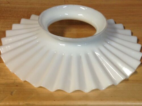 ANTIQUE VINTAGE MILK GLASS 8 1/8" PETTICOAT RUFFLED OIL LAMP SHADE LIGHT PART