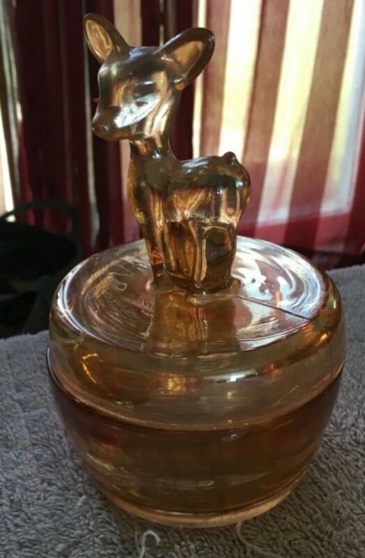 carmel colored bowl with a lid and a deer on top