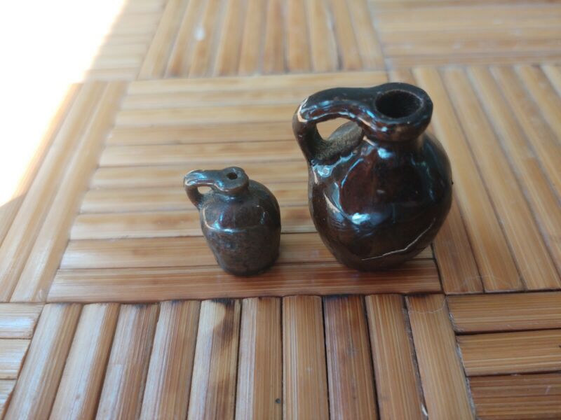 2 minature stoneware jugs. Circa 1900. Were in an old collar box. 1 -1 1/2" tall