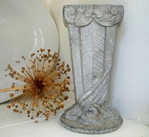 Vintage FARMHOUSE Gray Metal Flower VASE Planter ~Weather Crusty Oxidized Patina