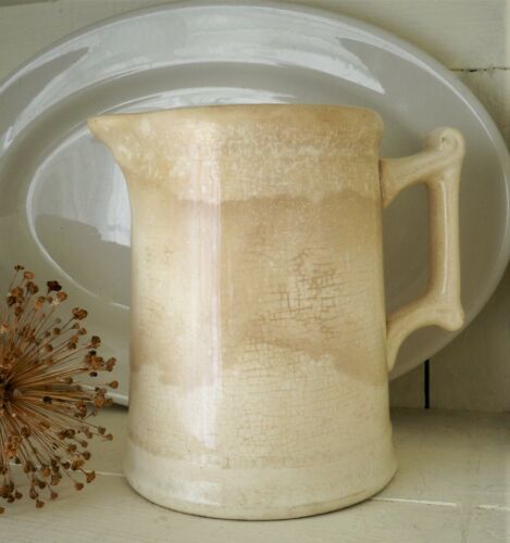 Antique FARMHOUSE Chic White IRONSTONE PITCHER A+ Crazing / RUSTIC Patina