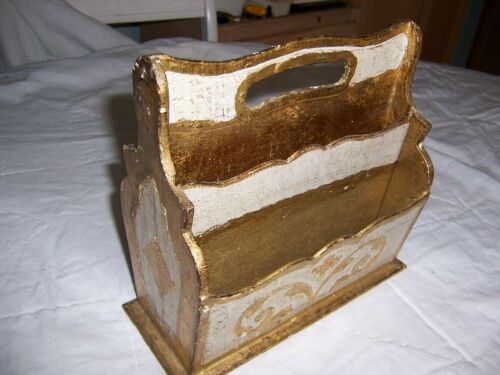 Vintage Florentine Letter Holder Italian Gilt Wood Box Mail Desk Organizer