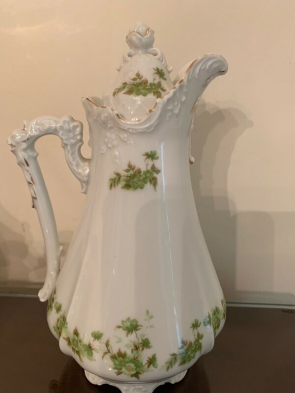 Title (ebay affiliate link): Antique Hand Painted Floral Chocolate Pot with Gold Trim, Marked "Silesia"