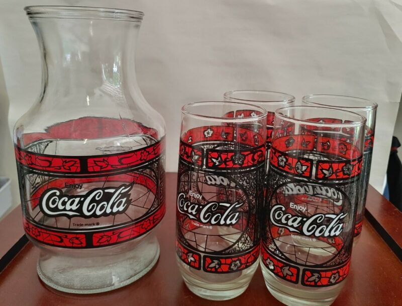 Title (ebay affiliate link): Vintage Coca-Cola Pitcher and 4 Glasses God father''s Pizza g16
