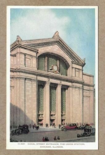 Chicago, IL Union Station Canal Street Entrance, Fred Harvey, Detroit Postcard