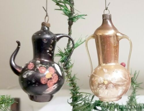 Title (ebay affiliate link): Gold Urn. Black Coffee Pot. Annealed Spout, handles. Two 1930s German Ornaments