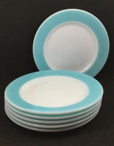 Title (ebay affiliate link): 6 Vintage Corning Milk Glass Turquoise Rim 9 3/8" Dinner Plates - Glassblower
