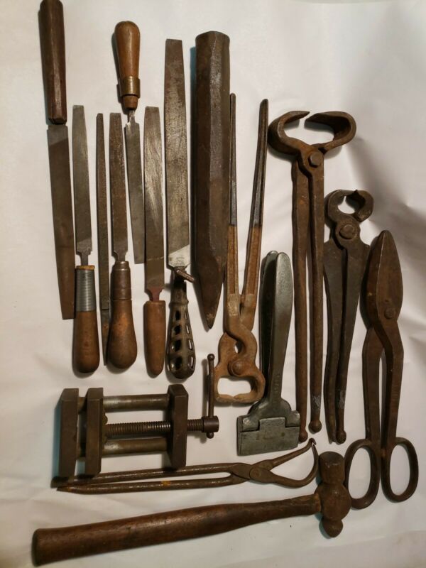 Title (ebay affiliate link): Vintage Lot Large BLACKSMITH METAL TOOLS HAMMER NIPPERS FILES VISE Forge