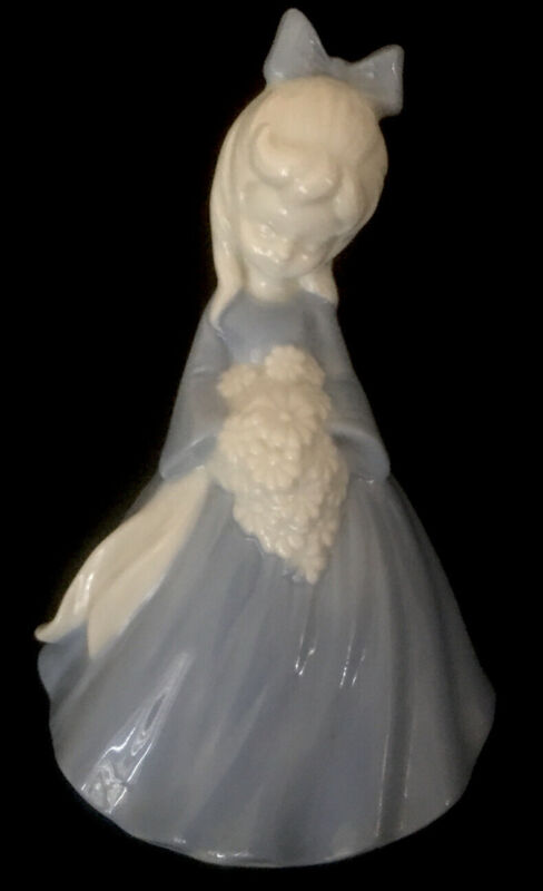 Title (ebay affiliate link): Vintage Music Box Porcelain Girl In Blue Dress Holding White Flowers