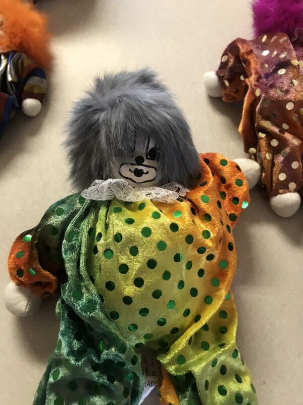 Title (ebay affiliate link): Vintage, 1987, Q-Tee- Clown Cloth Doll, Filled with Sand, Turquoise Rabbit Hair