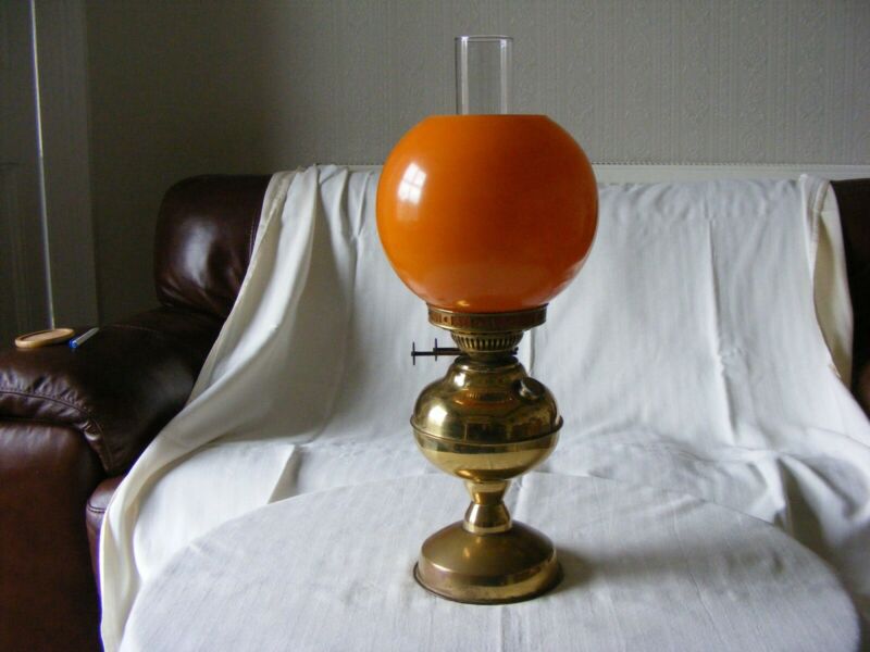 Original Vintage Paraffin/oil Lamp Orange Shade