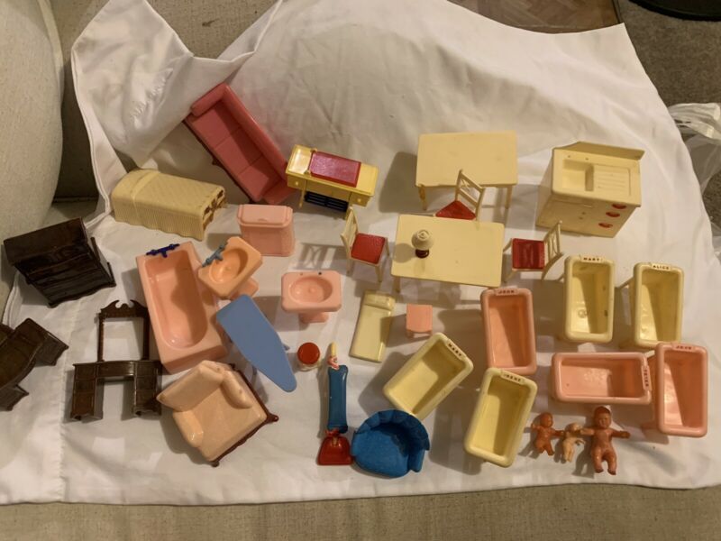 Title (ebay affiliate link): HUGE LOT VINTAGE RENWAL IDEAL GERBER PLASTIC DOLL HOUSE FURNITURE & ACCESSORIES