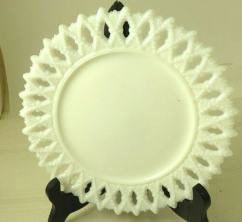 ANTIQUE MILK GLASS PLATE WITH DIAMOND AND SHELL BORDER